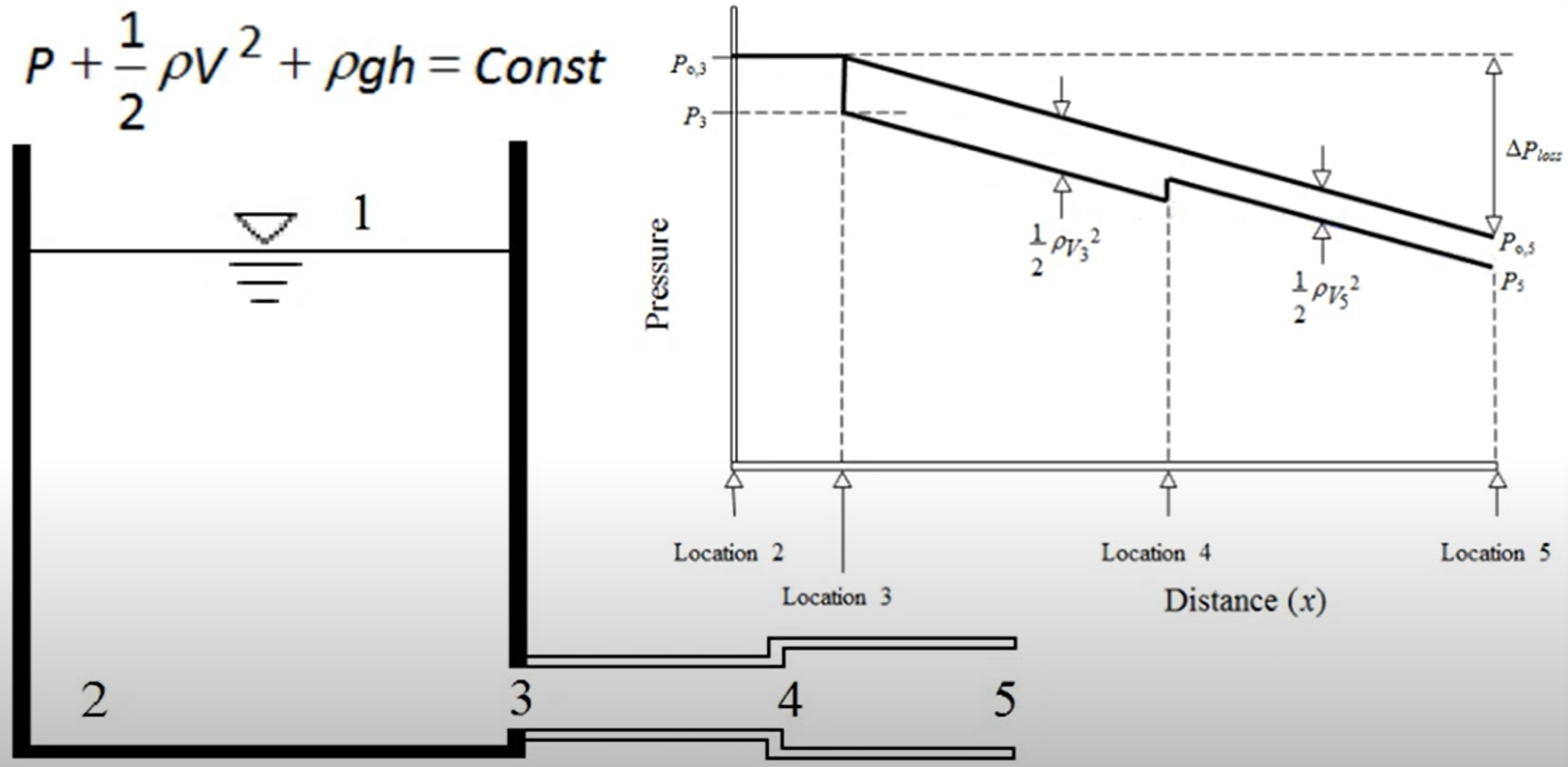 Often a source of confusion, we can use Bernoulli to explain the terminology around static pressure and stagnation pressure. Bernoulli states that for incompressible, inviscid flow, the sum of static pressure, dynamic pressure (or velocity head), and hydrostatic pressure is constant along a streamline (ignoring irrecoverable frictional losses).